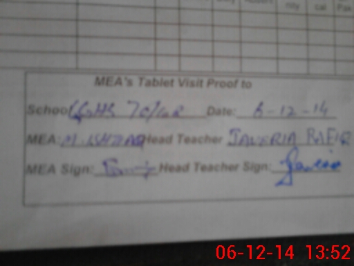 | Attendance Register | Head Teacher | MEA with School | Visit Proof |