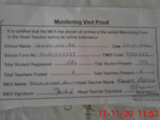 | EMIS Code: 31130263 | Name of School: GGPS CHAK NO. 210/9-R | |||