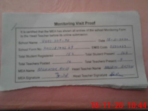 | Attendance Register | Head Teacher | MEA with School | Visit Proof |