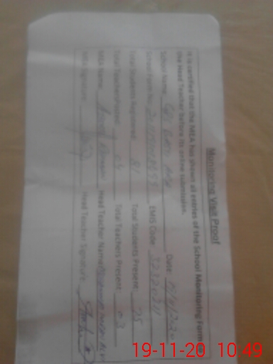 | Certified that this School was Inspected by the Undersigned MEA/DMO Today and the Information Stated Above is as Per Record. | |||||