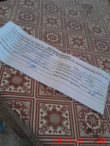 | Attendance Register | Head Teacher | MEA with School | Visit Proof |