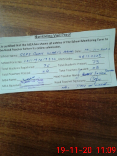 | Attendance Register | Head Teacher | MEA with School | Visit Proof |