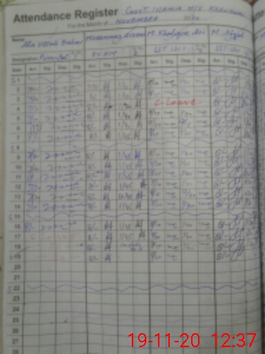 | CNIC | Full Name | Designation | R/C | Absence During Last Calender Month |