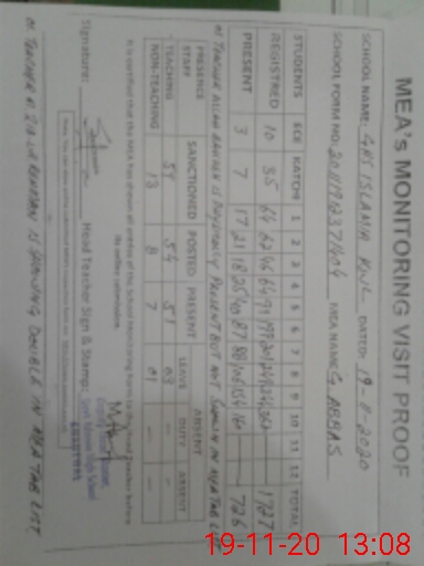 | Attendance Register | Head Teacher | MEA with School | Visit Proof |