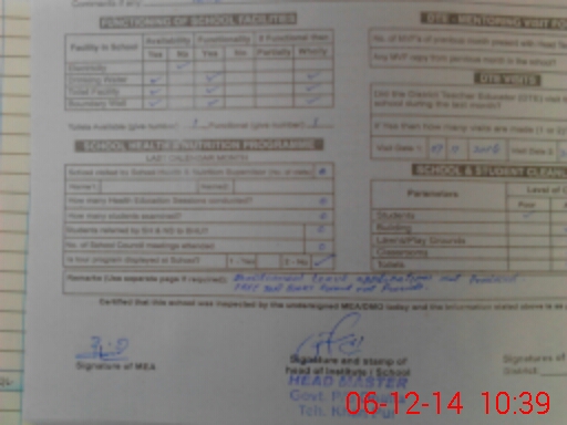 | Remarks (Use Separate Page if Required): Free textbook record not provide Sanctioned leave application not produced | |||||