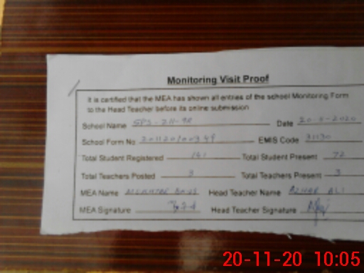 | Attendance Register | Head Teacher | MEA with School | Visit Proof |