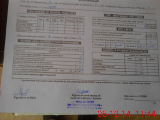 | Certified that this School was Inspected by the Undersigned MEA/DMO Today and the Information Stated Above is as Per Record. | |||||