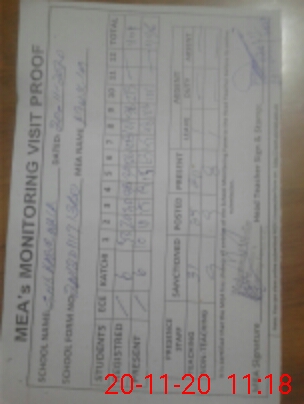 | Attendance Register | Head Teacher | MEA with School | Visit Proof |