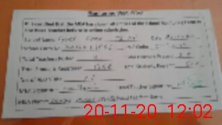 | Monitoring Date: 20-11-2020 | Start Time: 20-11-2020 10:46 AM | End Time: 20-11-2020 12:02 PM | Name of MEA: Ak**** Hu**** Bh**** | |