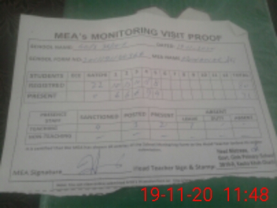 | Attendance Register | Head Teacher | MEA with School | Visit Proof |