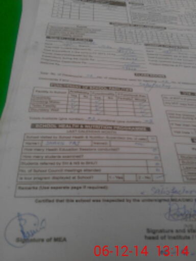 | Certified that this School was Inspected by the Undersigned MEA/DMO Today and the Information Stated Above is as Per Record. | |||||