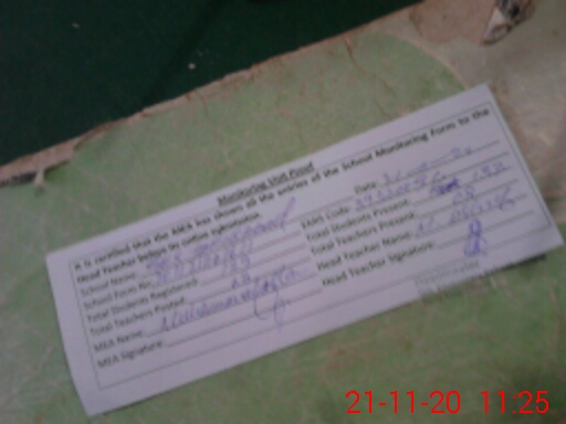 | Attendance Register | Head Teacher | MEA with School | Visit Proof |