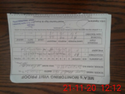 | Attendance Register | Head Teacher | MEA with School | Visit Proof |
