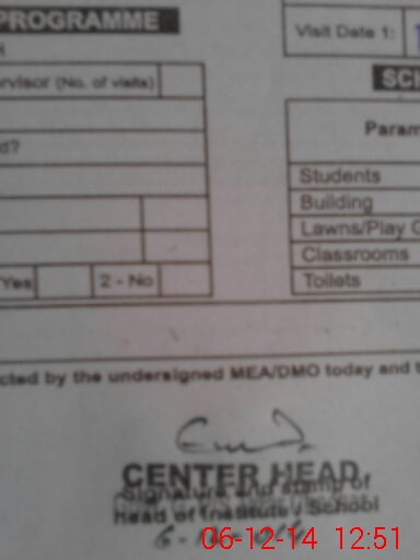 | Attendance Register | Head Teacher | MEA with School | Visit Proof |