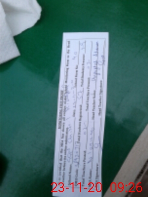 | Monitoring Date: 23-11-2020 | Start Time: 23-11-2020 09:04 AM | End Time: 23-11-2020 09:27 AM | Name of MEA: MU**** IR**** (R**** | |