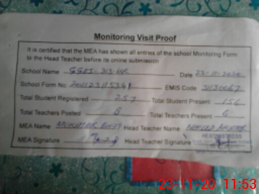 | Attendance Register | Head Teacher | MEA with School | Visit Proof |