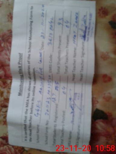 | Remarks (Use Separate Page if Required): 1 Amount of last fund received not up loaded in sis please 2 Student attendance list in tab for verification class kachi previous session being shown data required to be updated please class permoted to one | |||||