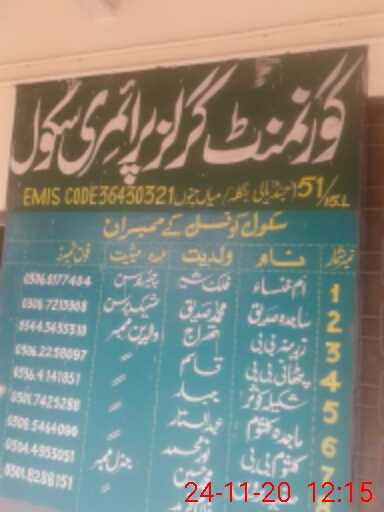 | EMIS Code: 36430321 | Name of School: GGPS 51/15-L, MIAN CHANNU | |||