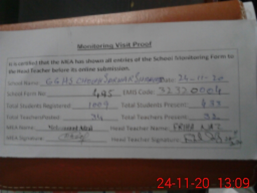 | EMIS Code: 32320004 | Name of School: GGHSS CHOWK SARWAR SHAHEED | |||