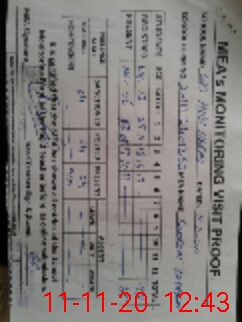 | School Visited by School Health & Nutrition Supervisor (No. of Visits) | 1 | Name1: | Naheed Nawaz | Name2: | |
