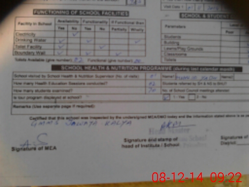 | Certified that this School was Inspected by the Undersigned MEA/DMO Today and the Information Stated Above is as Per Record. | |||||