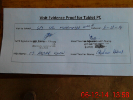 | Attendance Register | Head Teacher | MEA with School | Visit Proof |