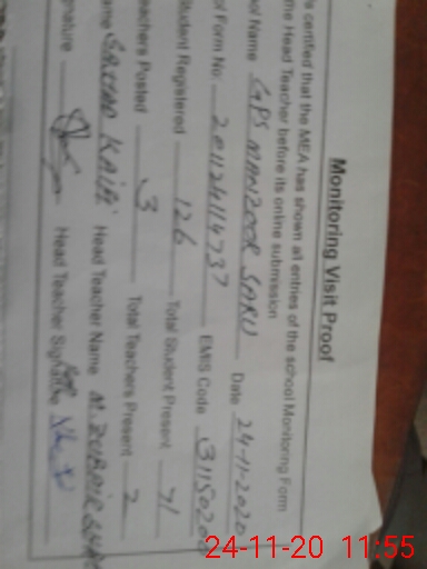 | EMIS Code: 31150200 | Name of School: GPS MANZOOR SARU | |||