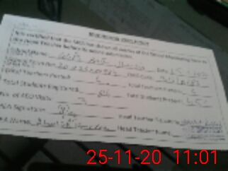 | Monitoring Date: 25-11-2020 | Start Time: 25-11-2020 10:52 AM | End Time: 25-11-2020 11:03 AM | Name of MEA: Kh**** Ta**** | |