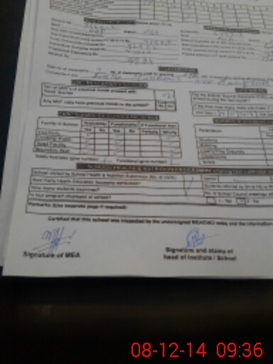 | Certified that this School was Inspected by the Undersigned MEA/DMO Today and the Information Stated Above is as Per Record. | |||||