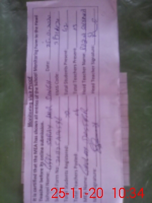 | Attendance Register | Head Teacher | MEA with School | Visit Proof |