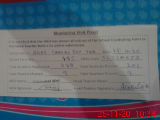 | EMIS Code: 32320073 | Name of School: GGHS CHAK NO. 507 TDA | |||