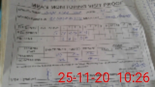 | Monitoring Date: 25-11-2020 | Start Time: 25-11-2020 09:56 AM | End Time: 25-11-2020 10:27 AM | Name of MEA: Sa**** Ah**** | |