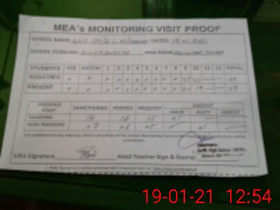 | Attendance Register | Head Teacher | MEA with School | Visit Proof |