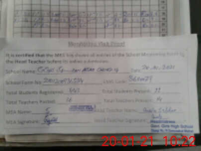 | Attendance Register | Head Teacher | MEA with School | Visit Proof |