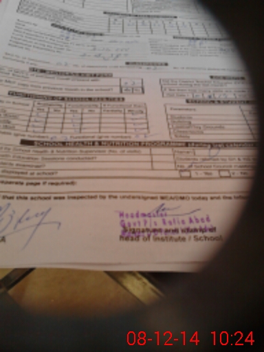 | Certified that this School was Inspected by the Undersigned MEA/DMO Today and the Information Stated Above is as Per Record. | |||||
