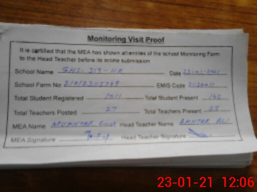 | EMIS Code: 31130011 | Name of School: GHSS CHAK 319/HR | |||