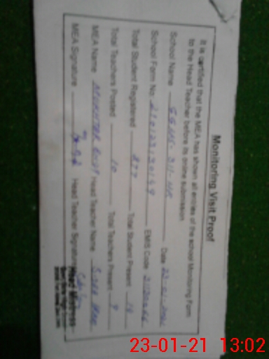 | Attendance Register | Head Teacher | MEA with School | Visit Proof |