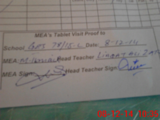 | Attendance Register | Head Teacher | MEA with School | Visit Proof |