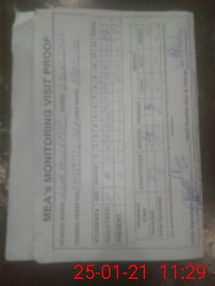| Attendance Register | Head Teacher | MEA with School | Visit Proof |