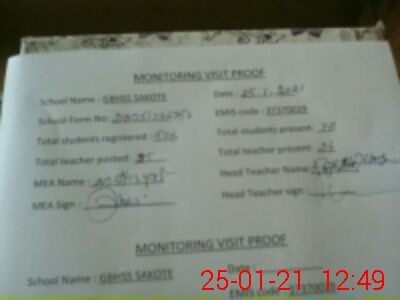 | Attendance Register | Head Teacher | MEA with School | Visit Proof |