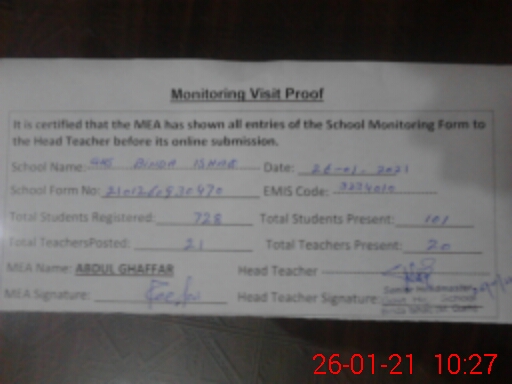 | EMIS Code: 32340010 | Name of School: GHS BINDA ISHAQ | |||