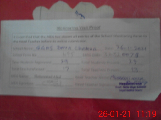 | EMIS Code: 32320078 | Name of School: GGHS DAYA CHOKHA | |||