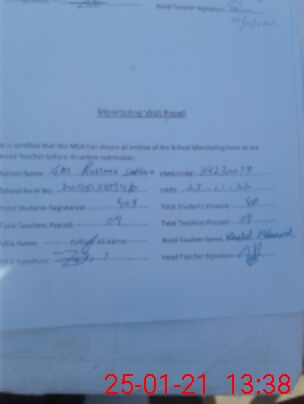 | Name: MU**** AS**** Designation: (School Headmaster's/Headmistress's) HM Phone/Cell Number: 03**** |