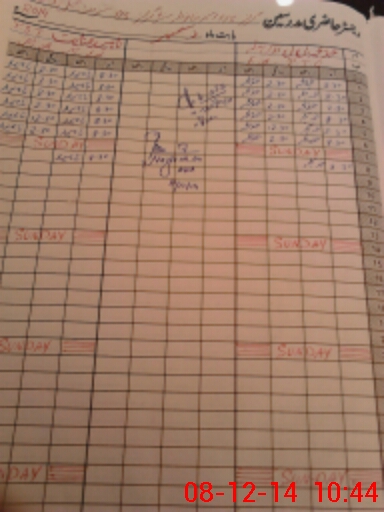 | CNIC | Full Name | Designation | R/C | Absence During Last Calender Month |
