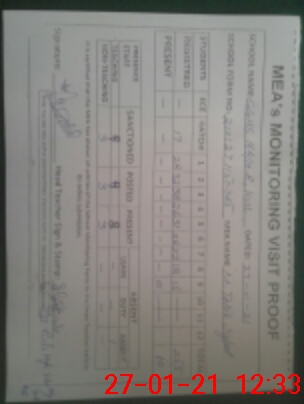 | Attendance Register | Head Teacher | MEA with School | Visit Proof |