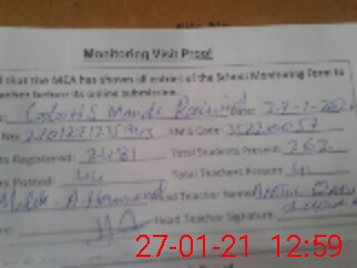 | Attendance Register | Head Teacher | MEA with School | Visit Proof |
