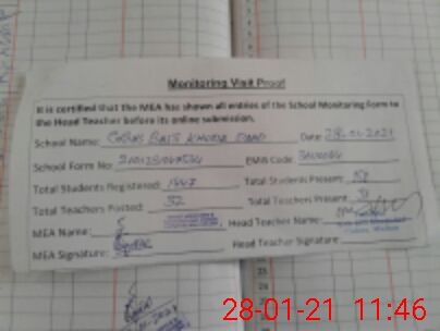 | Attendance Register | Head Teacher | MEA with School | Visit Proof |