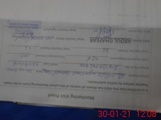 | Certified that this School was Inspected by the Undersigned MEA/DMO Today and the Information Stated Above is as Per Record. | |||||