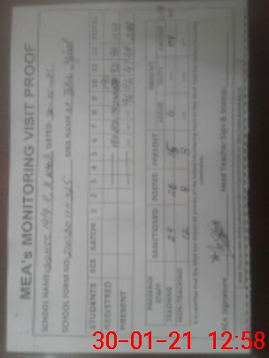 | Attendance Register | Head Teacher | MEA with School | Visit Proof |
