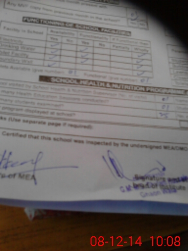| Certified that this School was Inspected by the Undersigned MEA/DMO Today and the Information Stated Above is as Per Record. | |||||